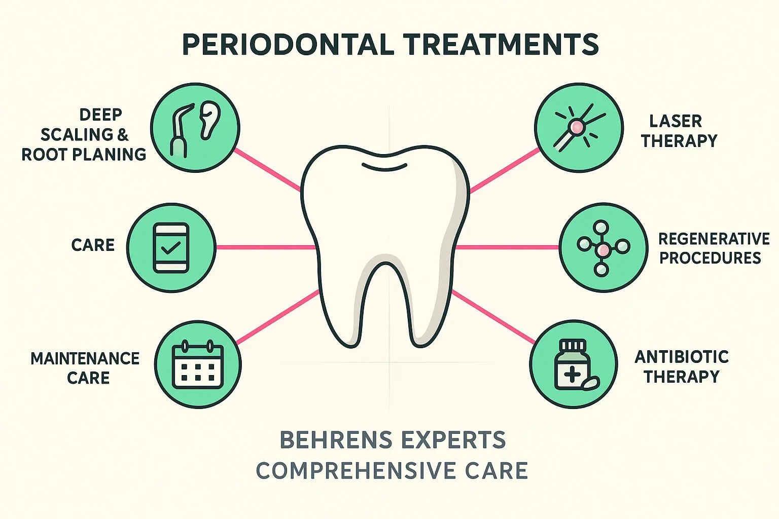 Overview of professional gum disease treatments offered by Behrens Dental Practice, highlighting comprehensive care options.