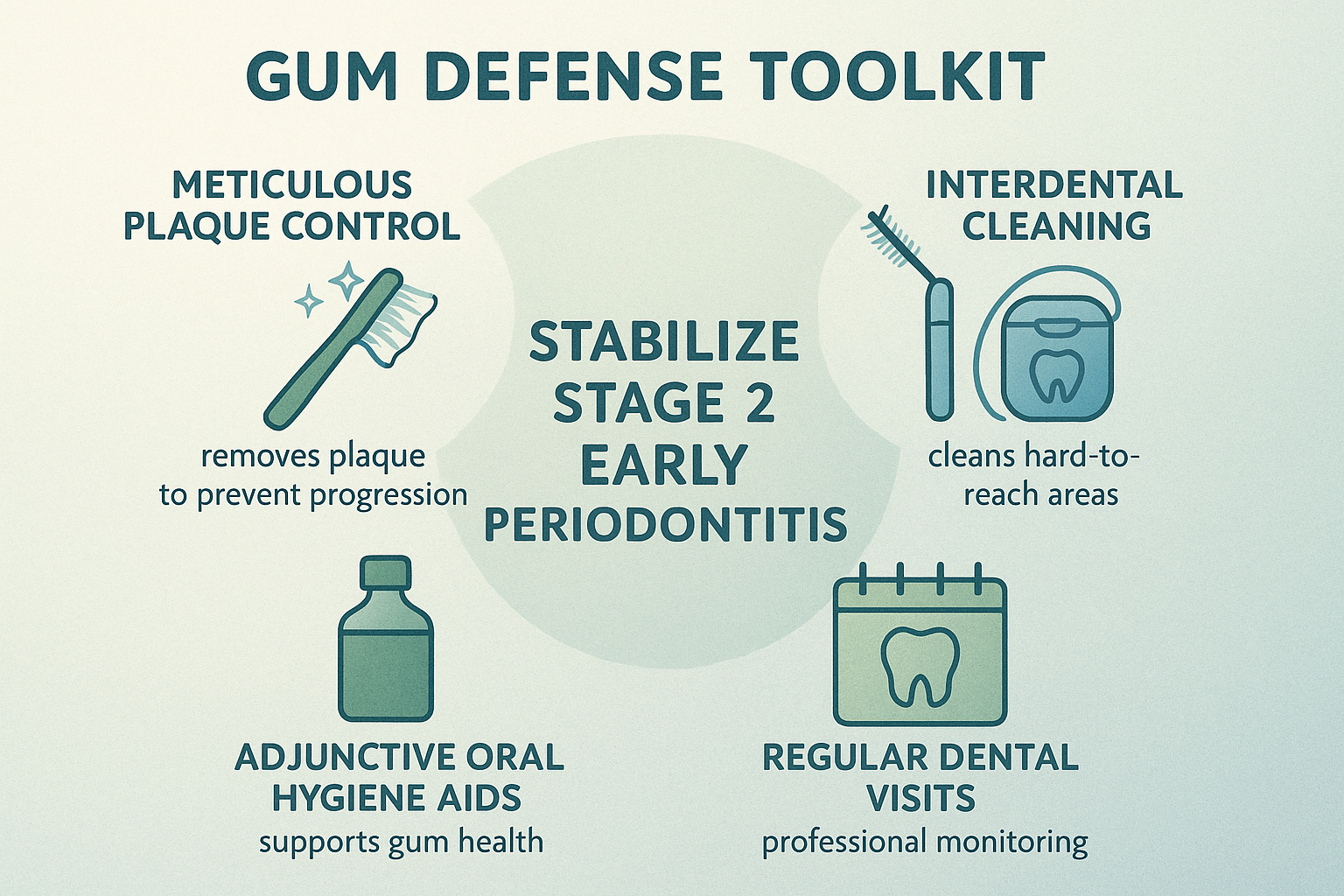 Professional treatment is only half the battle. What you do at home every day is what keeps periodontitis under control long-term. Stabilizing Stage 2 disease requires a meticulous commitment to oral hygiene.