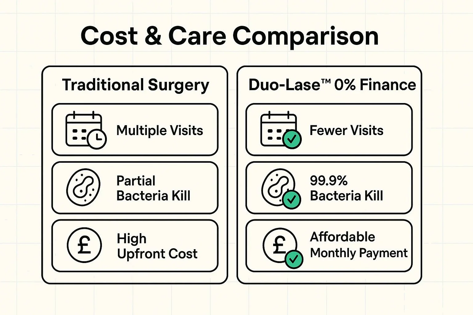 Many patients searching for Duo-Lase™ discover that this targeted approach, combined with our finance options, makes advanced care far more attainable than they initially feared.