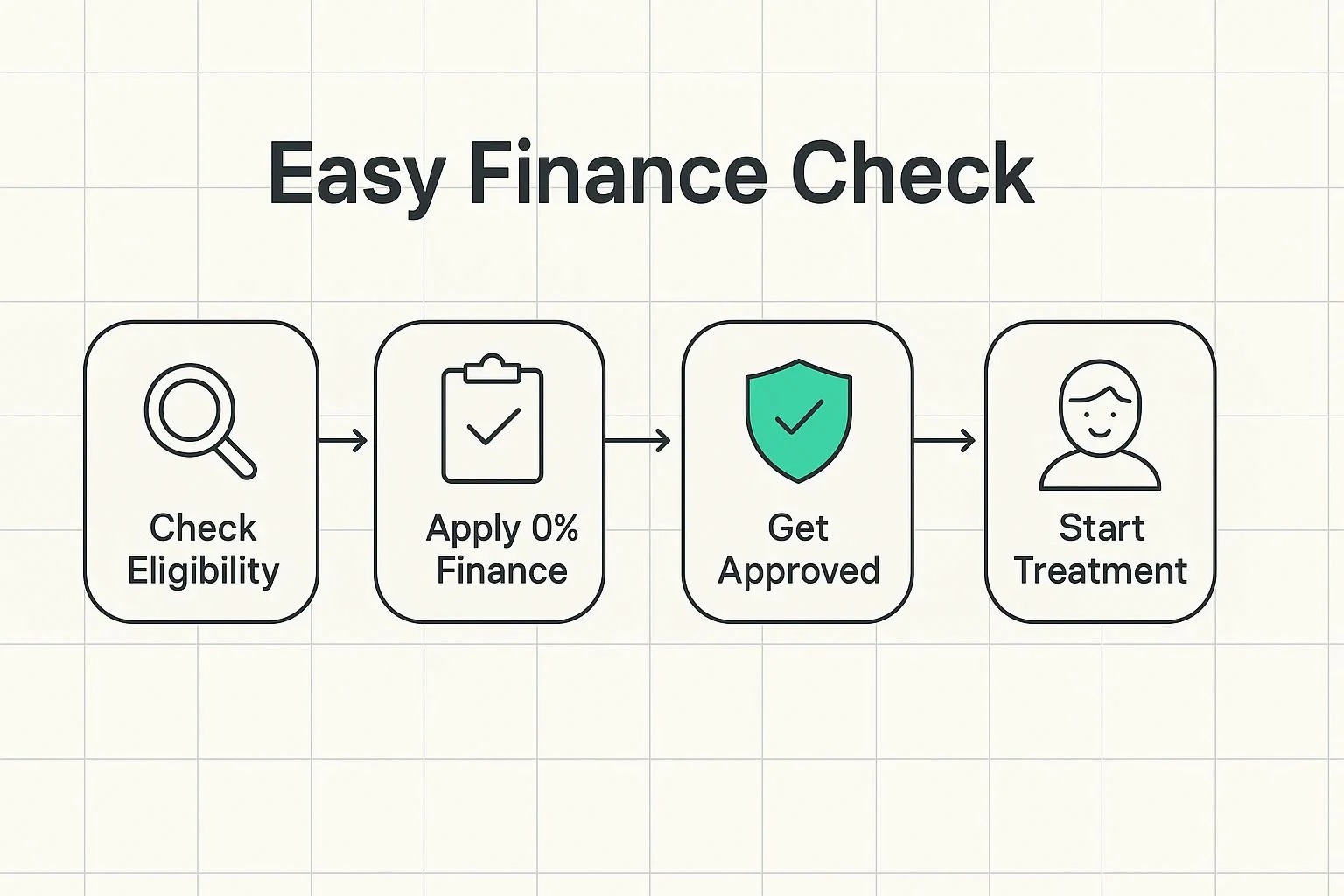 Instead of paying the full amount upfront, you can utilize our 0% finance plan over 24 months. If a treatment plan were to cost £2,400 (for illustrative purposes), this breaks down to £100 per month.