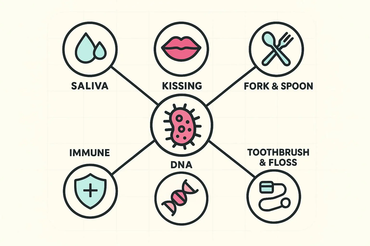 Don't Panic About Sharing: You don't need to live in fear of sharing a glass of water or kissing your partner. Instead, focus on creating a household culture of excellent oral hygiene.