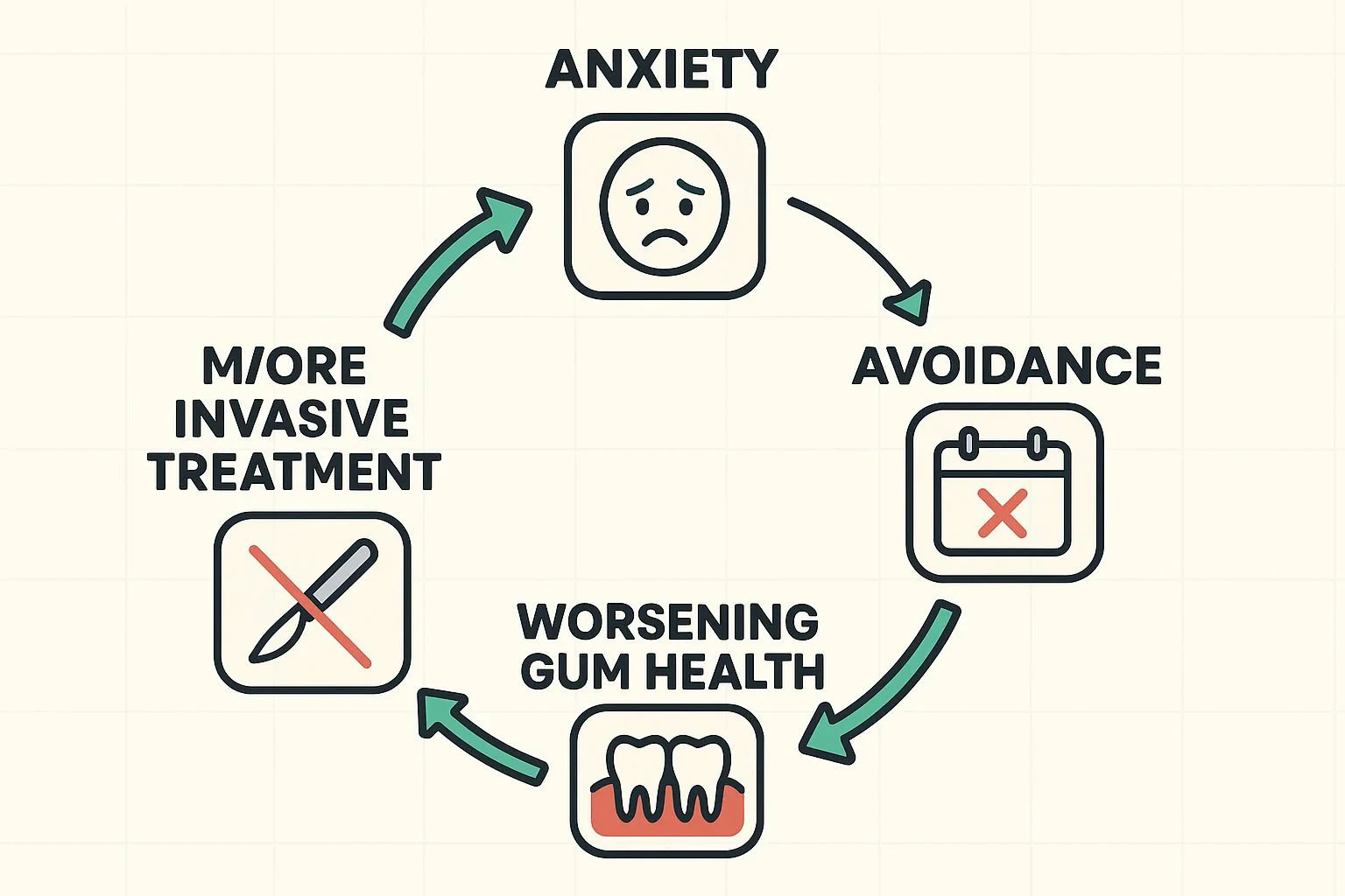 Worsening symptoms (like loose teeth or bad breath) increase the fear that treatment will now be major and painful.